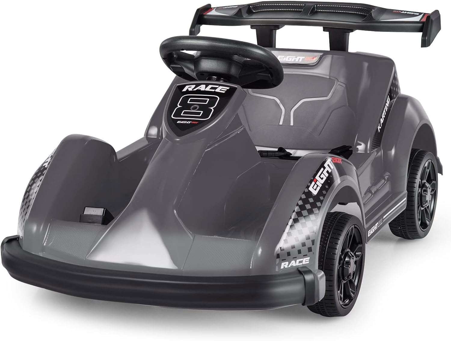 - Interesting Sounds & Music: Equipped with play/pause function, volume adjustment, external device input, this electric go kart allows kids to enjoy built-in music or their own music freely and conveniently. And there are sound buttons on the steering wheel to provide extra fun. The steering wheel requires 2 x 1.5V AA battery (not included).