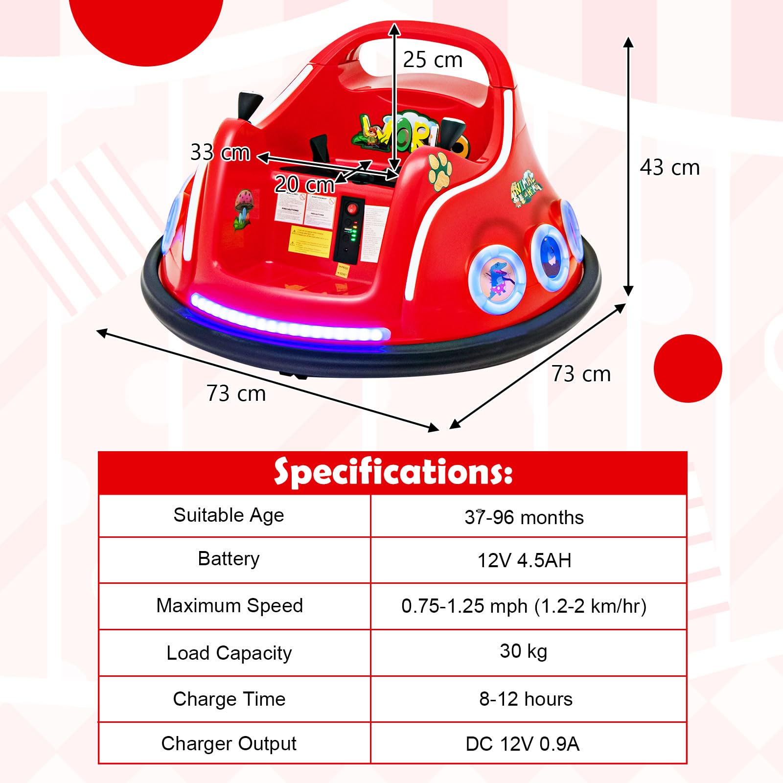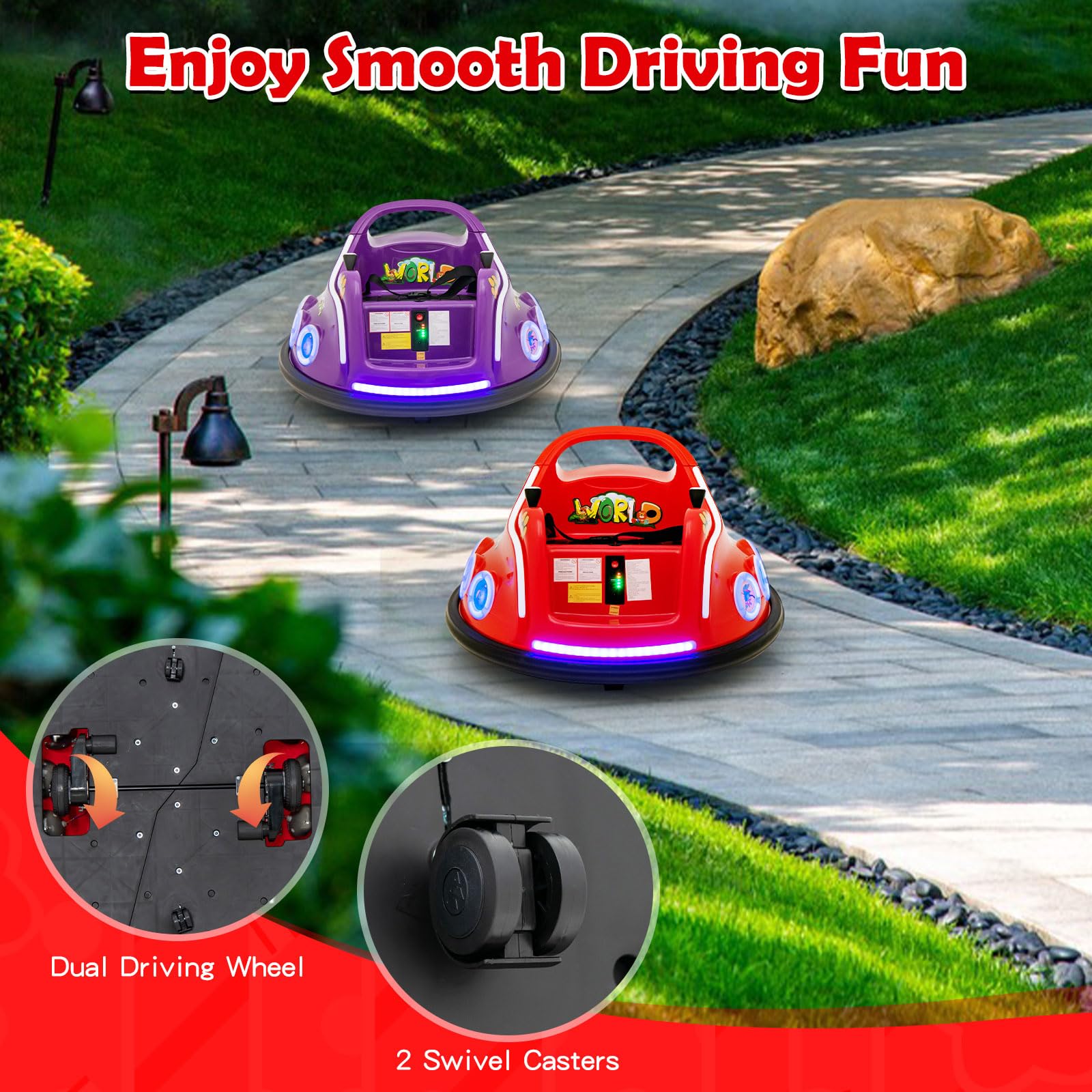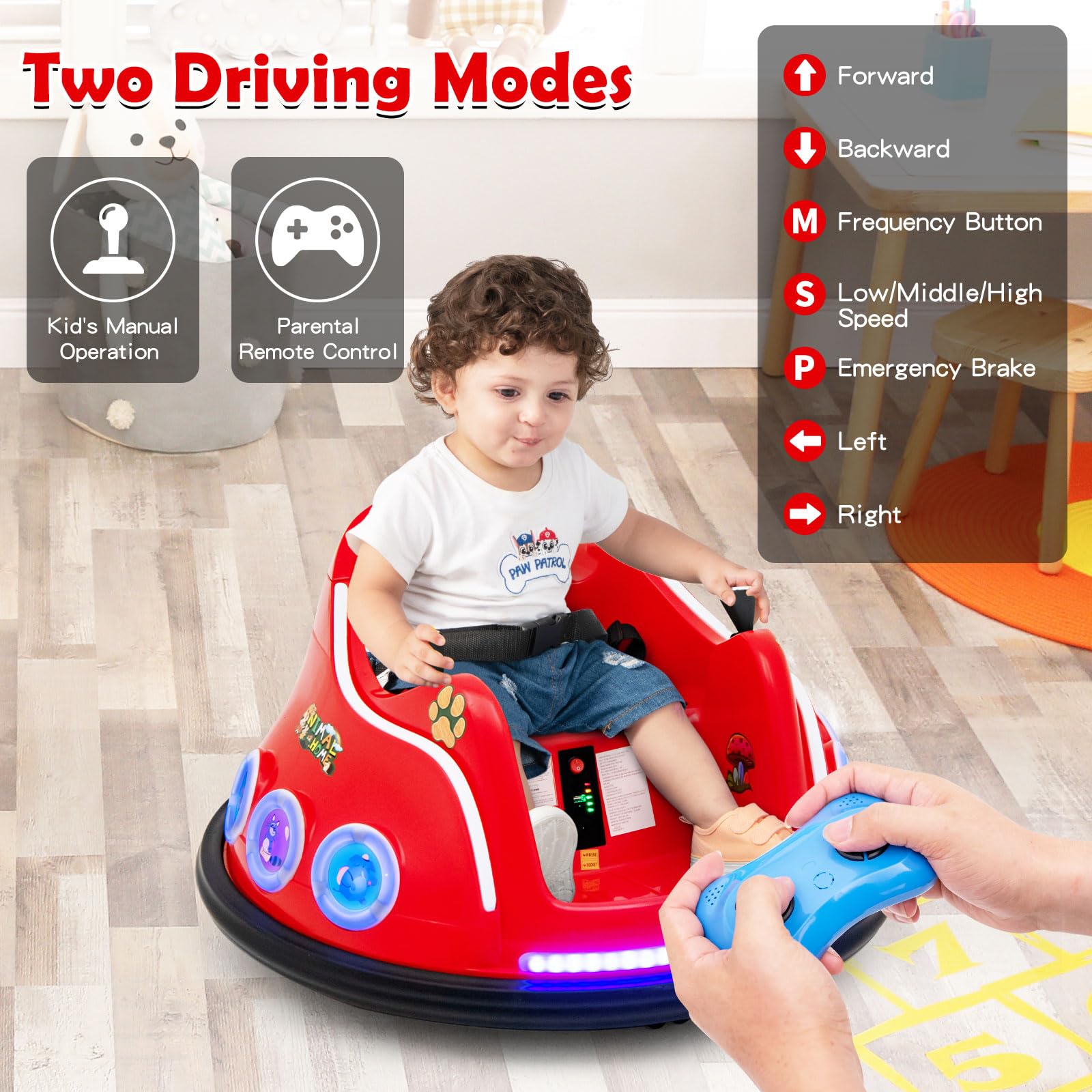 • Exciting Lights & Charming Design: Coming with the front LED light and side breathing lights, this bumper car immerses your child in a world of excitement and wonder. Moreover, with its charming cartoon pattern design, this bumper car adds an extra touch of delight to playtime.