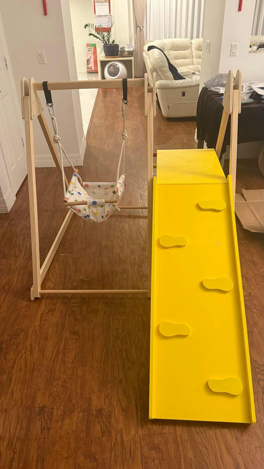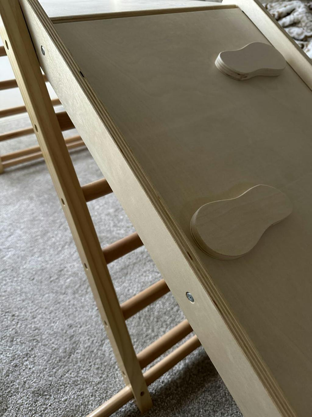 4-in-1 climbing toys come with climbing ladders, a ramp for sliding and climbing, and a height adjustable swing, which can meet various satisfactions and fun. Children will have more fun with friends and family, and enjoy the colorful childhood instead of spending too much time on display. High-quality solid pine and juniper wood and stable triangular design provides stability. This wooden triangle climber can hold up to 275kg and the swing can hold up to 55lbs. It is suitable for children over 3 years old. The surface is smooth and burr free, which is able to keep safe for children playing and prevent children from getting hurt.